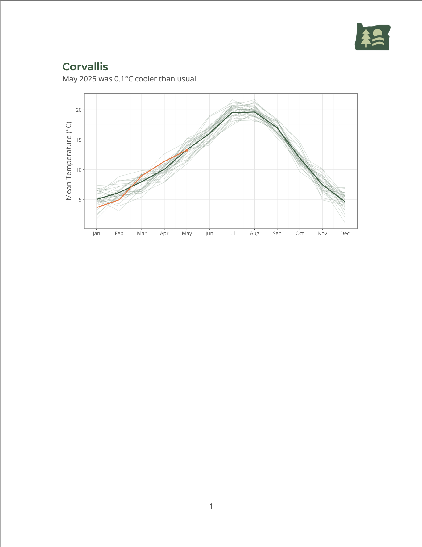 + labs(title = "Corvallis, OR", x="", y="Mean Temperature (°C)")